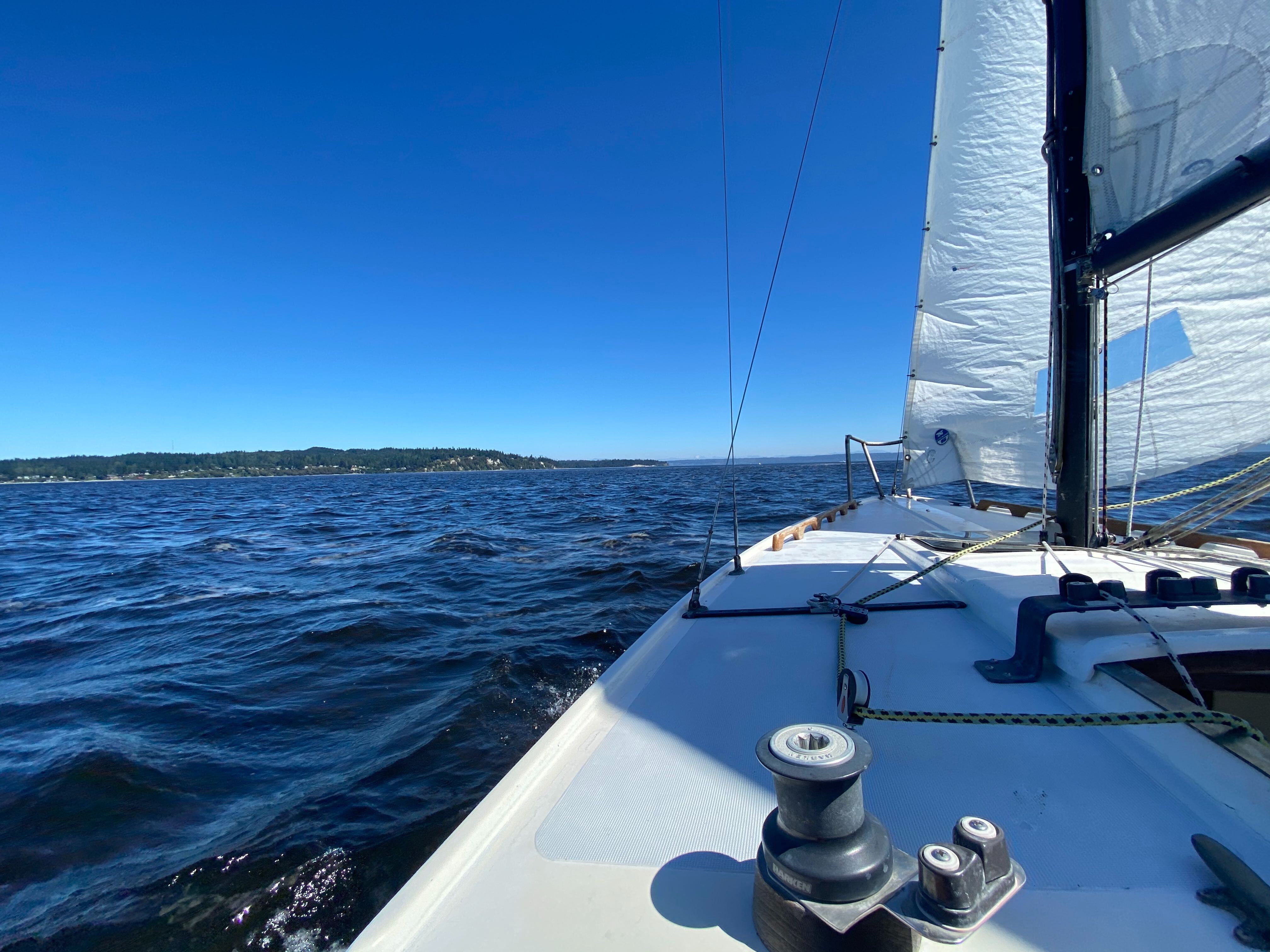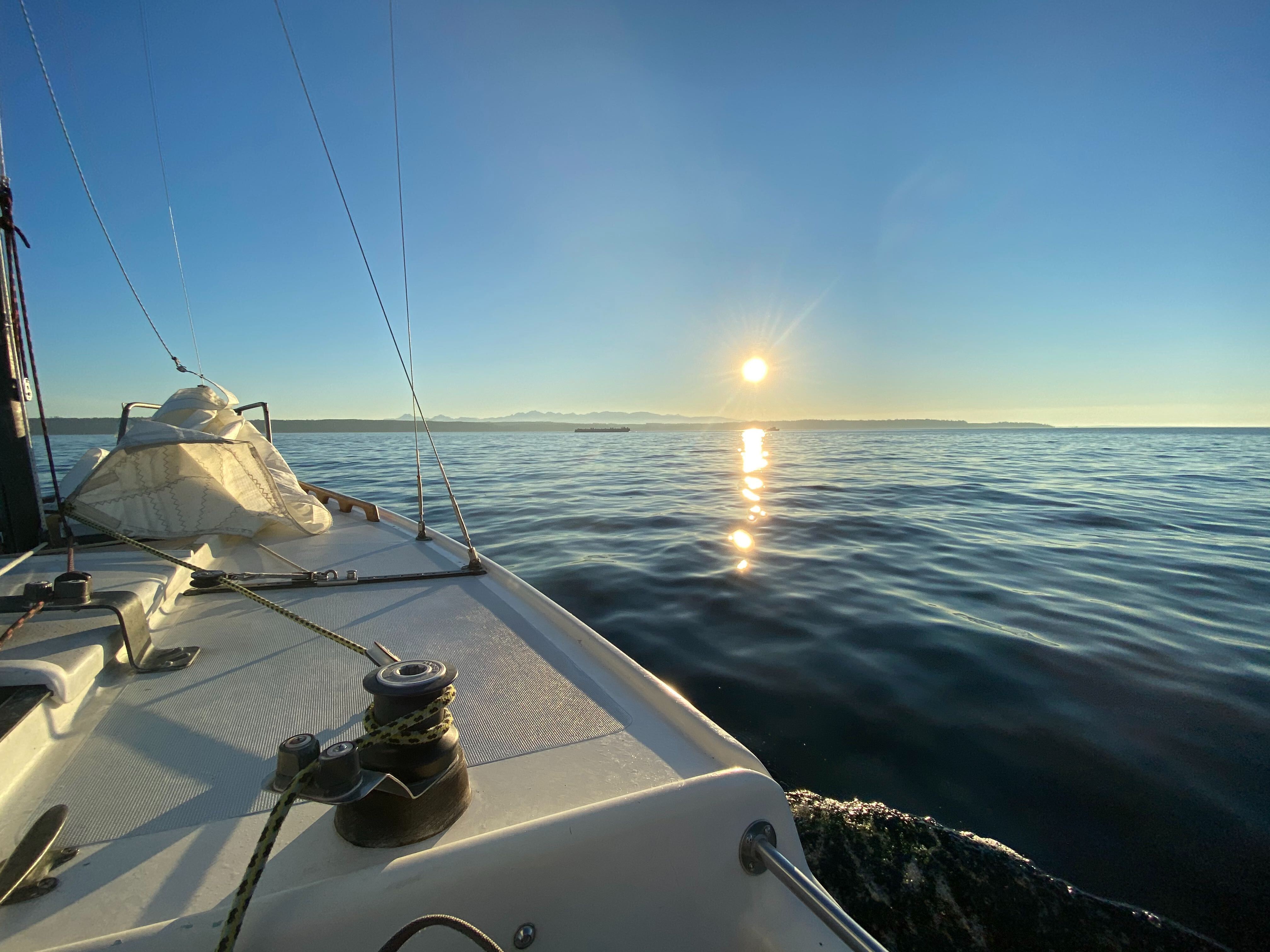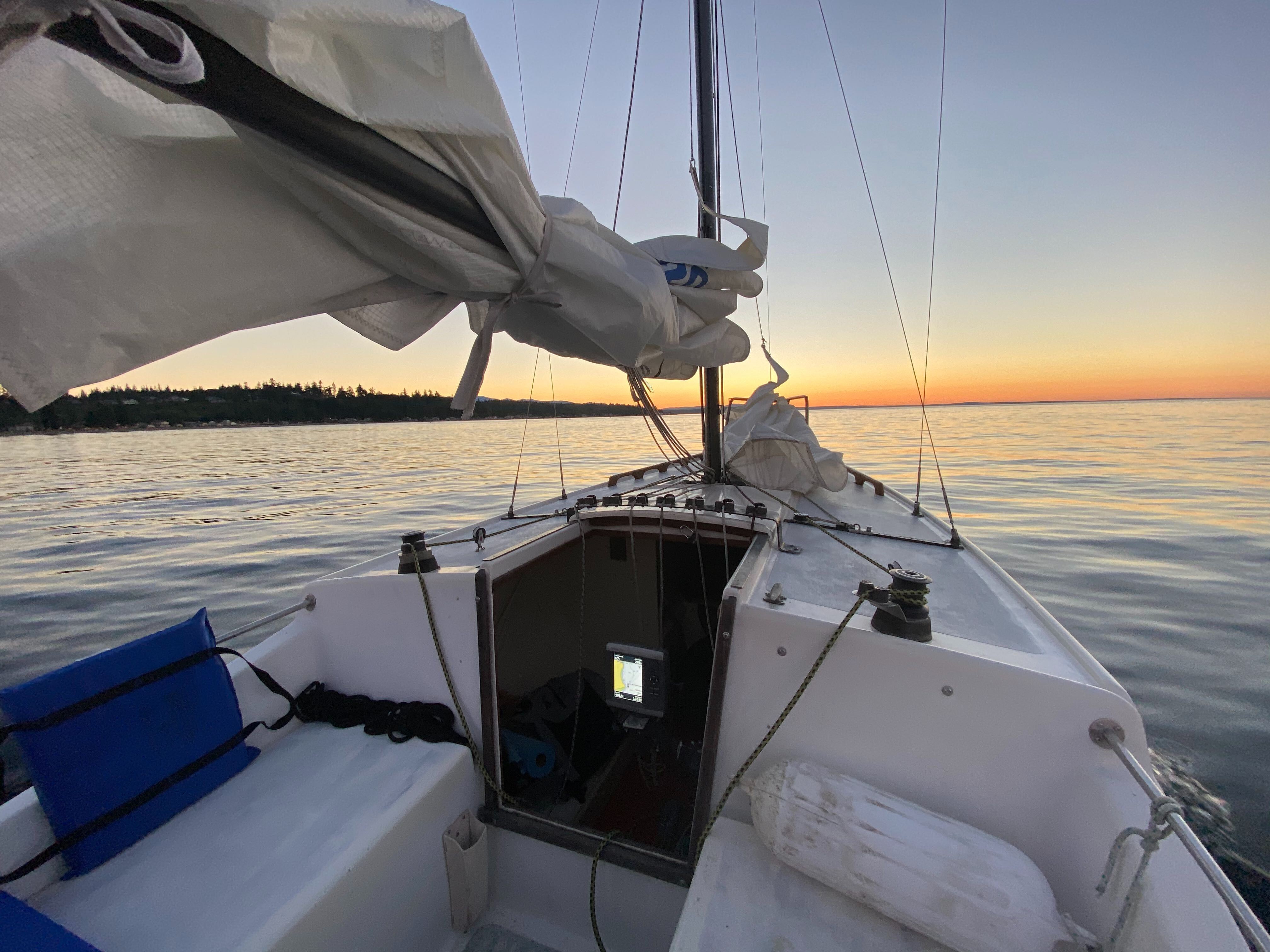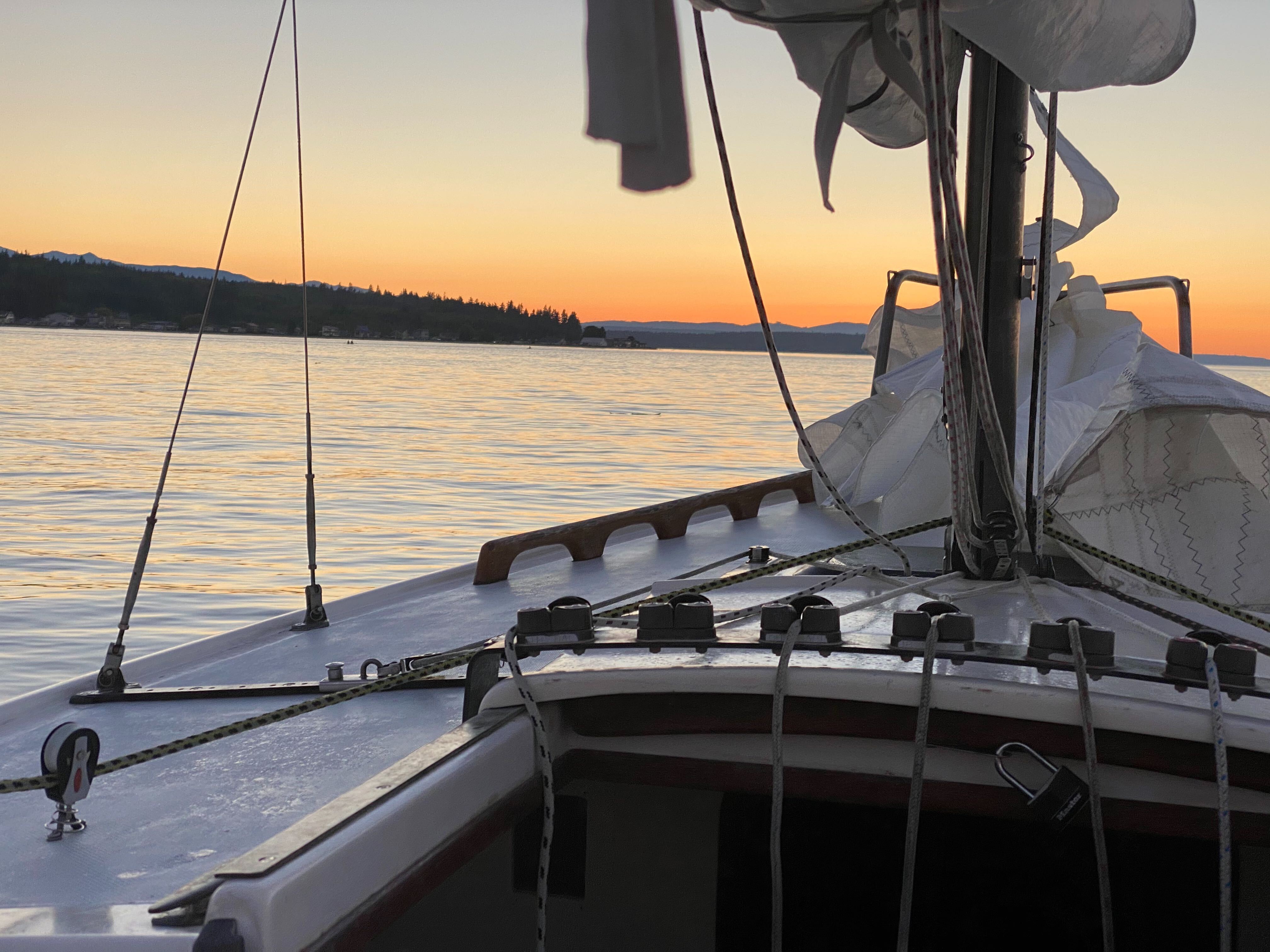 I bought the boat from a gentleman that had the boat in a marina in Poulsbo. The marina required me to vacate the marina shortly after purchasing Eclipse. At the time the only marina I could find that had availability was up in Port Ludlow. So on a day that the weather looked to be pretty nice I set off with a friend from Poulsbo, and we started making the trek up to Port Ludlow. When leaving though I was a bit back and forth on filling up on gas as we had a little over 3 gallons of gas onboard, but the fuel dock was full with a fairly long wait. So we went ahead and headed out. We really couldn’t have asked for a better day to be out on the water, it started off with a pretty strong northerly. We were able to sail for the majority of the day. Around sunset though the wind completely died off, not even a hint of a breeze. So we started motoring the remaining 15 or so miles that we still had to go.